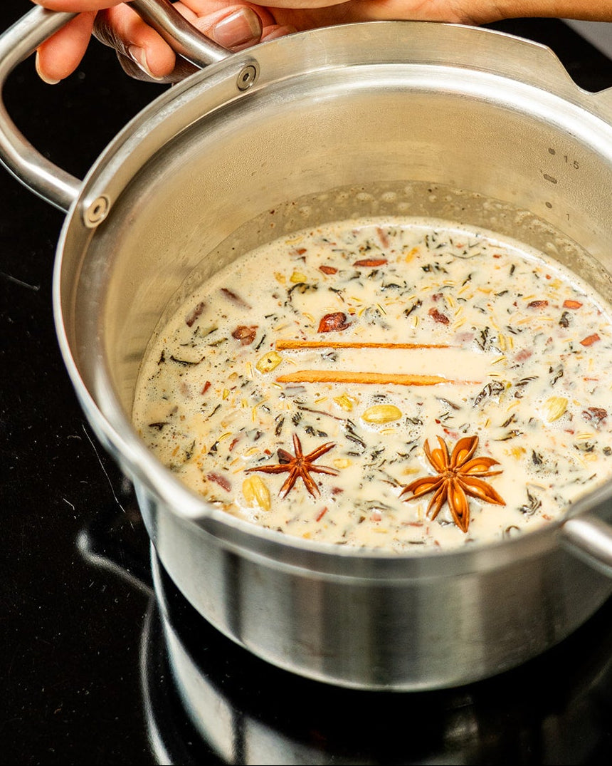 Wij maken onze chai producten op basis van zwarte thee en een kruidenmix van kaneel, kardemom, peper, venkel, gember, steranijs en kruidnagel.